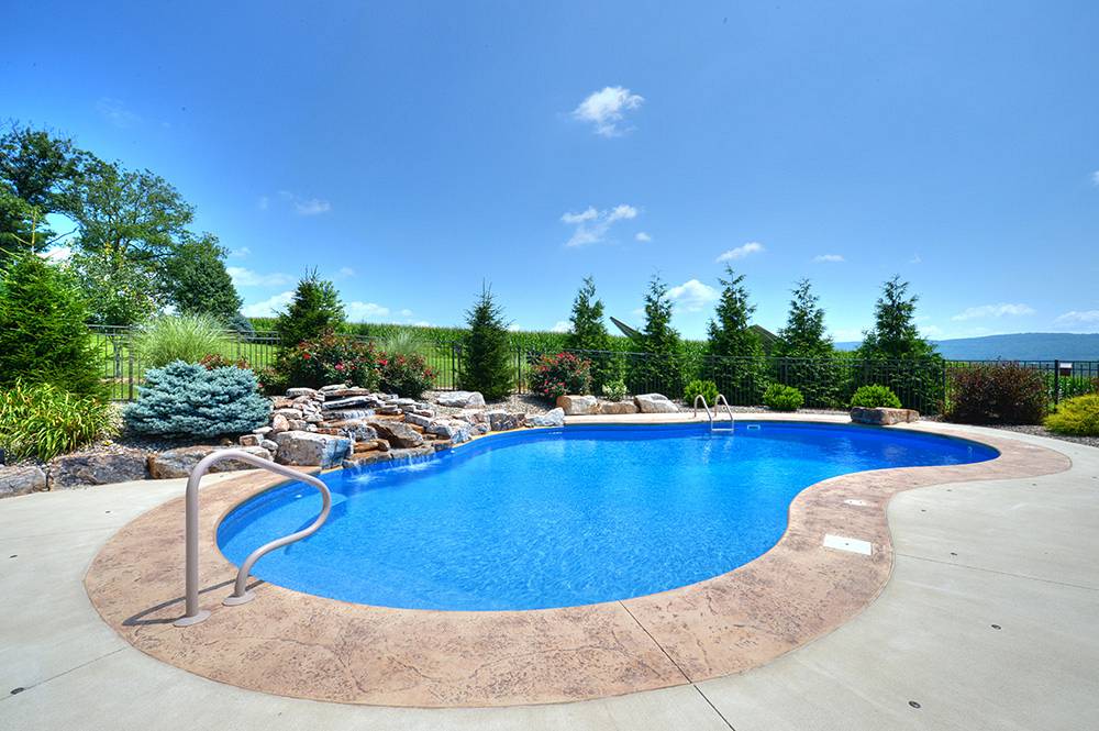 Pool Shape – The most common pool shape is a rectangle. Also, kidney bean shaped pools have become very common. We offer several pool shapes and features. If primarily you want to use the pool for entertaining; the swimming pool area can be designed so that it serves as an extension of your existing living space. In this scenario, walking to the pool should almost have the feel of walking into another room in your home. If you have a young family and seek recreational options; the pool can be built for kids to play volley ball, dive off a diving board and play on a slide. Sometimes sport or recreational pools are built at a greater distance from your home, but the overall design will still maintain a visually appealing connection to the back side of your home.