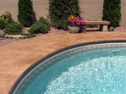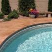 Pool Patio Decks – The stone or concrete deck around your pool can range in size from a 3’ or 4’ foot “side walk” (around the pool’s edge) to a more elaborate hardscape. Sloping of the back yard or “future pool area” (due to a significant grade across the yard) will influence the options in designing your stone and concrete hardscape and may require extensive retaining walls, or other elaborate elements. Once the concrete is poured and the stones and water features are put in place, a specialty coating is applied to the concrete to dress it up and make it cooler on your feet.